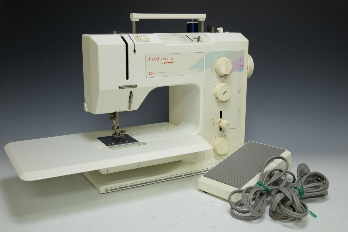 RCM・ホリデーヌシリーズは、家庭用ミシンの新しいスタイルを提案したシリーズで1980年代後半にリリースされました。当時の最新式のコンピュータを搭載し、各種縫い目のパターン(ジグザグ、直線、飾り縫いなど)が選択できるダイヤルやスイッチを搭載したモデルです。厚地もしっかりと縫えるパワーと縫い目の美しさが特徴でスイス発のミシンメーカー「BERNINA(ベルニナ)」社とのコラボミシンを発表したことで人気を博し、多くの手芸愛好者に支持されました。